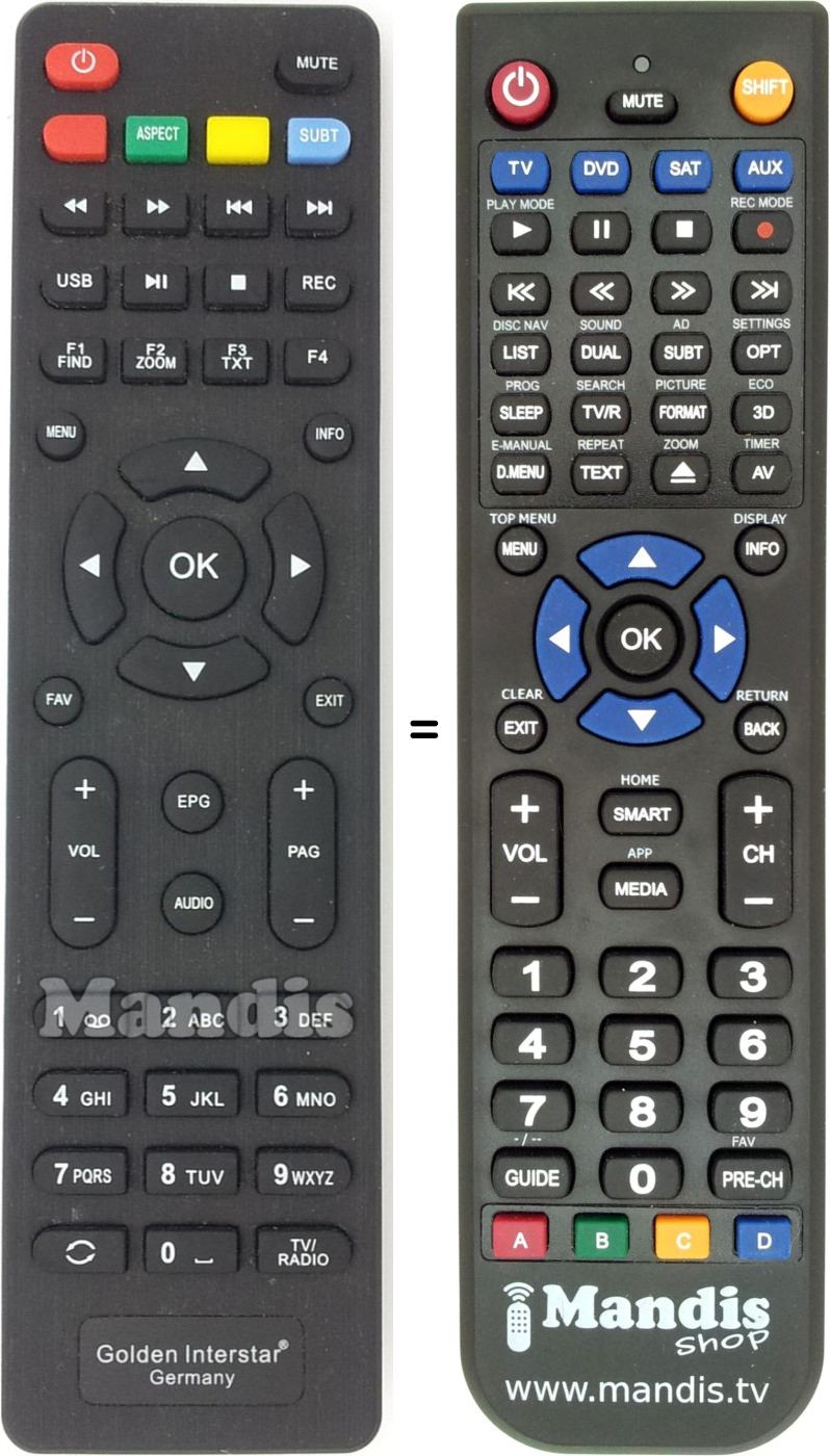 Remote control for GOLDEN INTERSTAR Gold001