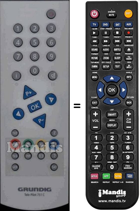 When we send the remote control, we also send a document with the correspondence of the keys between the replacement and the original remote controls which allows you to know how to perform the functions of the original remote. Sometimes it is available on the web so you can download it.