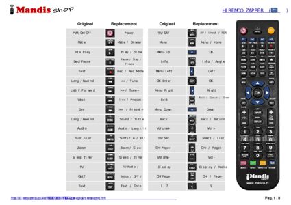 Below, we will show you the correspondence between each button on the original remote control and the button that performs the same function on the replacement remote control. In some cases, you may need to press the SHIFT key before pressing another button to perform certain actions. These additional functions are often not widely used and are included to facilitate understanding of the replacement remote control, or because the original remote control has more buttons than its equivalent.