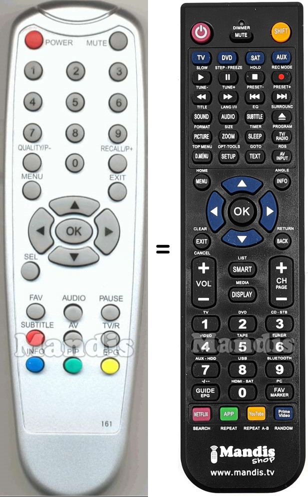 This remote control fully replaces your 161 and offers all the functions of the original.