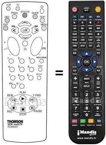 Below, we will show you the correspondence between each button on the original remote control and the button that performs the same function on the replacement remote control. In some cases, you may need to press the SHIFT key before pressing another button to perform certain actions. These additional functions are often not widely used and are included to facilitate understanding of the replacement remote control, or because the original remote control has more buttons than its equivalent.