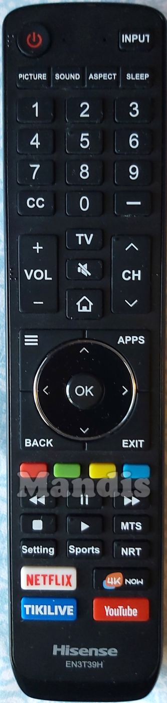 original remote control EN3T39H used for televisions for the brand Hisense. This is an original remote control.