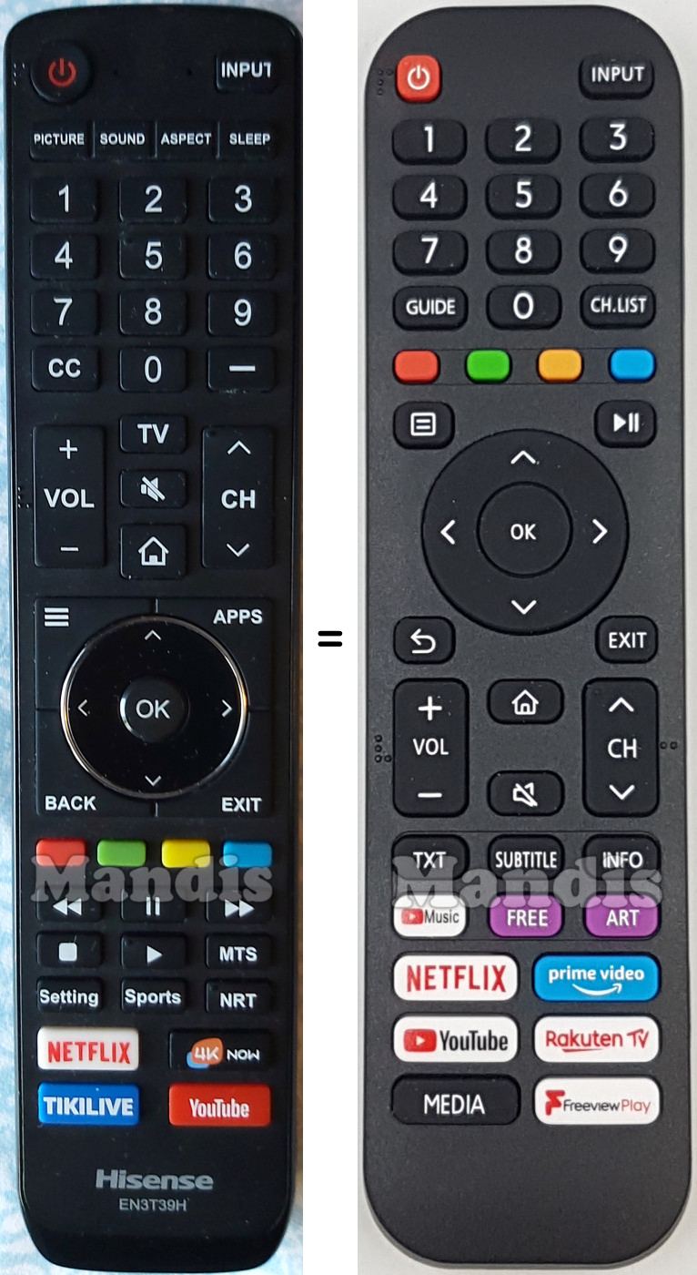 Remote control Universal TV Hisense used for televisions.