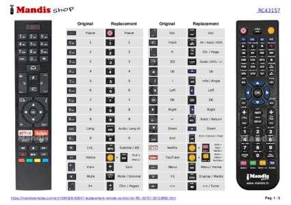 A document is included to help you use the new remote control easily, showing the button correspondence.