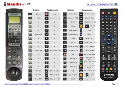 Below, we will show you the correspondence between each button on the original remote control and the button that performs the same function on the replacement remote control. In some cases, you may need to press the SHIFT key before pressing another button to perform certain actions. These additional functions are often not widely used and are included to facilitate understanding of the replacement remote control, or because the original remote control has more buttons than its equivalent.