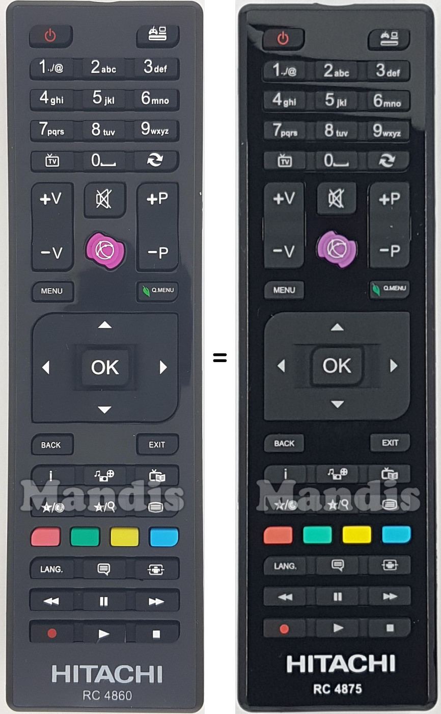 Replacement remote controls that replace in all its functions the remote HITACHI RC4875 (U258505):