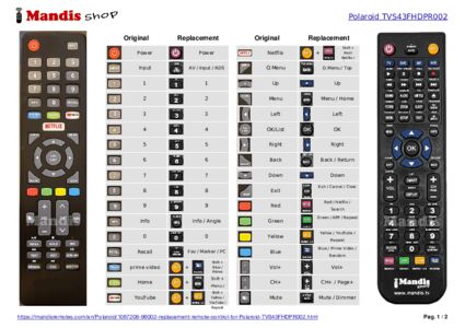 Below, we will show you the correspondence between each button on the original remote control and the button that performs the same function on the replacement remote control. In some cases, you may need to press the SHIFT key before pressing another button to perform certain actions. These additional functions are often not widely used and are included to facilitate understanding of the replacement remote control, or because the original remote control has more buttons than its equivalent.