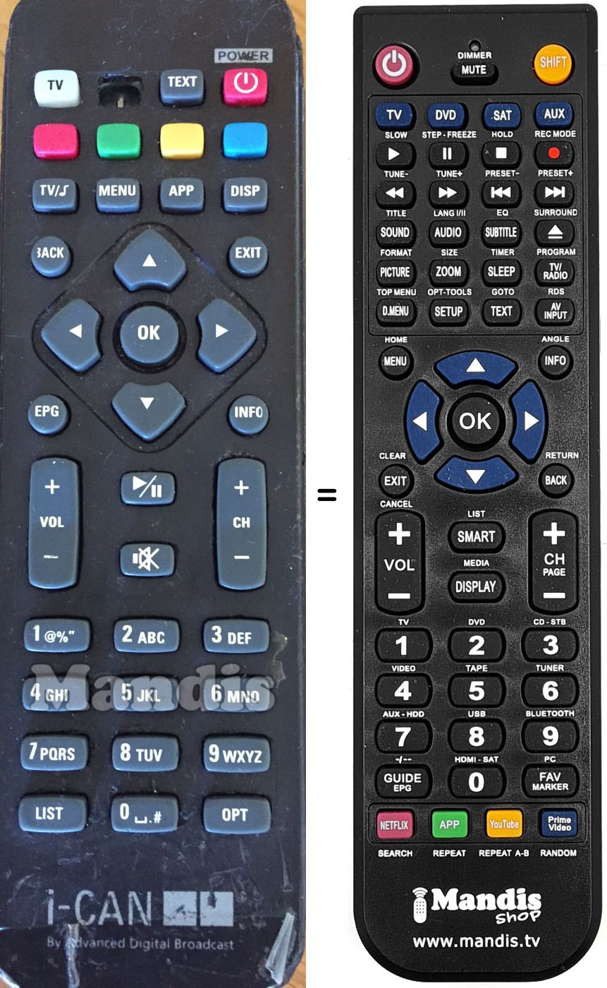 Remote control to replace the original remote ICAN1110SV-STORM (ICAN1110SVSTORM) and all its functions.