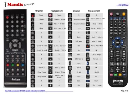Below, we will show you the correspondence between each button on the original remote control and the button that performs the same function on the replacement remote control. In some cases, you may need to press the SHIFT key before pressing another button to perform certain actions. These additional functions are often not widely used and are included to facilitate understanding of the replacement remote control, or because the original remote control has more buttons than its equivalent.