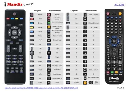 This remote control fully replaces your RC1205 and offers all the functions of the original.