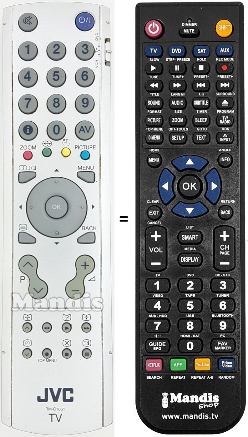 replacement remote control RM-C1861 (30039453) used for televisions for the brand JVC.