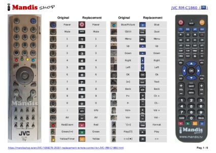 Below, we will show you the correspondence between each button on the original remote control and the button that performs the same function on the replacement remote control. In some cases, you may need to press the SHIFT key before pressing another button to perform certain actions. These additional functions are often not widely used and are included to facilitate understanding of the replacement remote control, or because the original remote control has more buttons than its equivalent.