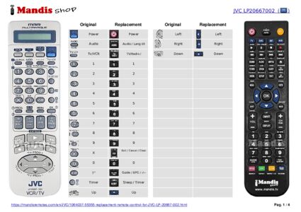 Below, we will show you the correspondence between each button on the original remote control and the button that performs the same function on the replacement remote control. In some cases, you may need to press the SHIFT key before pressing another button to perform certain actions. These additional functions are often not widely used and are included to facilitate understanding of the replacement remote control, or because the original remote control has more buttons than its equivalent.