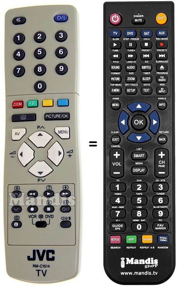 Remote control to replace the original RM-C1514 (BE5F2602W001) and all its functions.
