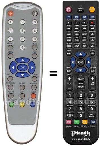 Below, we will show you the correspondence between each button on the original remote control and the button that performs the same function on the replacement remote control. In some cases, you may need to press the SHIFT key before pressing another button to perform certain actions. These additional functions are often not widely used and are included to facilitate understanding of the replacement remote control, or because the original remote control has more buttons than its equivalent.