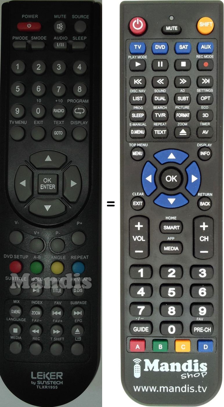 This remote control fully replaces your TLXR1955 and offers all the functions of the original.