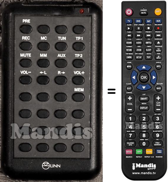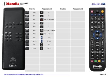 This remote control replaces most of the functions of your LK1 (ver. 1). It is not a universal remote control, but a copy with most of the buttons and functions of your original.