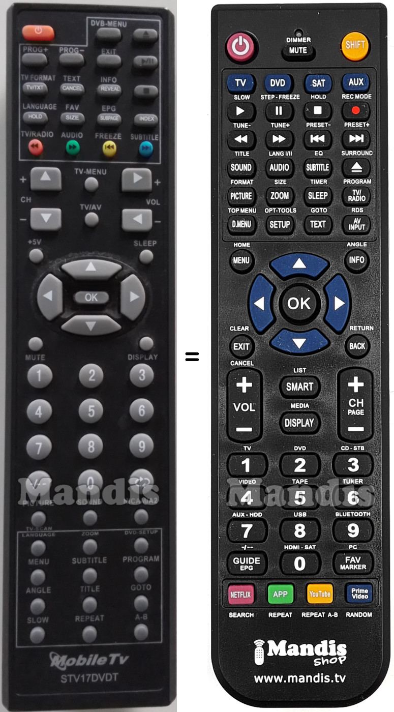 This remote control fully replaces your STV17DVDT-1 and offers all the functions of the original.