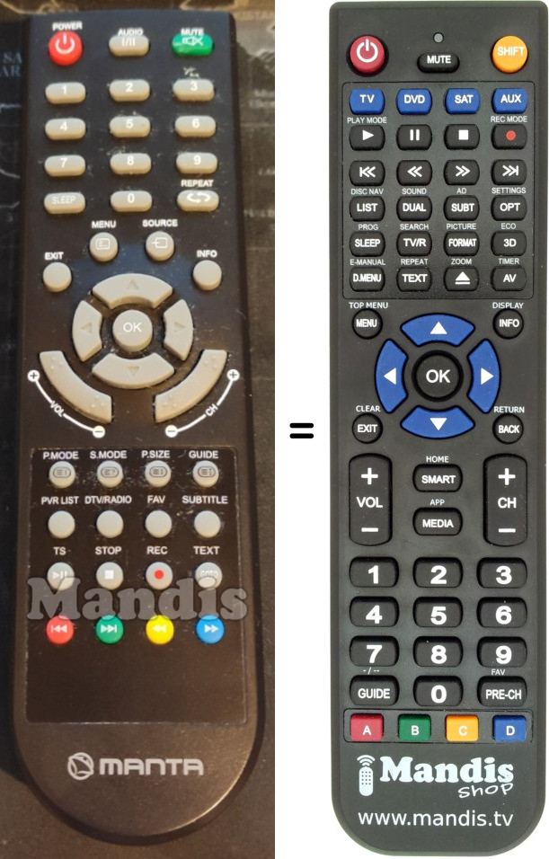 This remote control fully replaces your Manta002 and offers all the functions of the original.