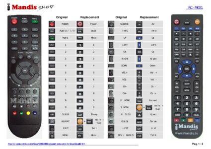 A document is included to help you use the new remote control easily, showing the button correspondence.