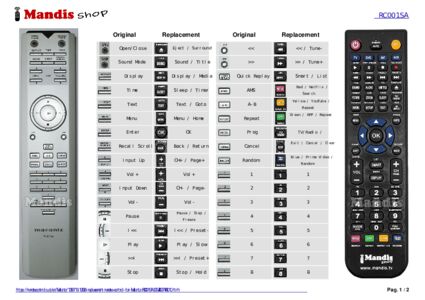 Below, we will show you the correspondence between each button on the original remote control and the button that performs the same function on the replacement remote control. In some cases, you may need to press the SHIFT key before pressing another button to perform certain actions. These additional functions are often not widely used and are included to facilitate understanding of the replacement remote control, or because the original remote control has more buttons than its equivalent.