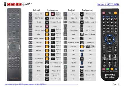 This remote control fully replaces your RC002PMND and offers all the functions of the original.