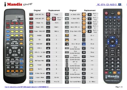 Below, we will show you the correspondence between each button on the original remote control and the button that performs the same function on the replacement remote control. In some cases, you may need to press the SHIFT key before pressing another button to perform certain actions. These additional functions are often not widely used and are included to facilitate understanding of the replacement remote control, or because the original remote control has more buttons than its equivalent.
