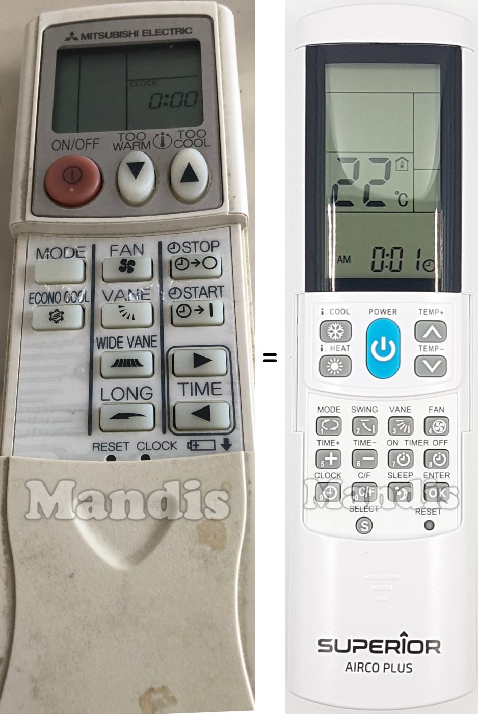 My LG air-conditioner's remote died and need replacement. AircoPlus did the job. I should point out that the code match did not correspond according to manufacturer's table. Let the auto-search code set up do the work. Also, excellent service by Mandis Remotes with a well-protected package.