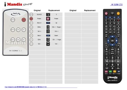 This remote control fully replaces your Hi-Sonic 5.1 and offers all the functions of the original.