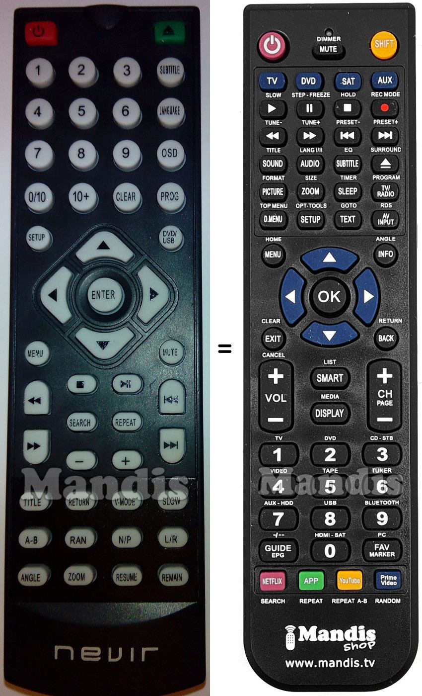 Remote control for NEVIR NVR2316DVD