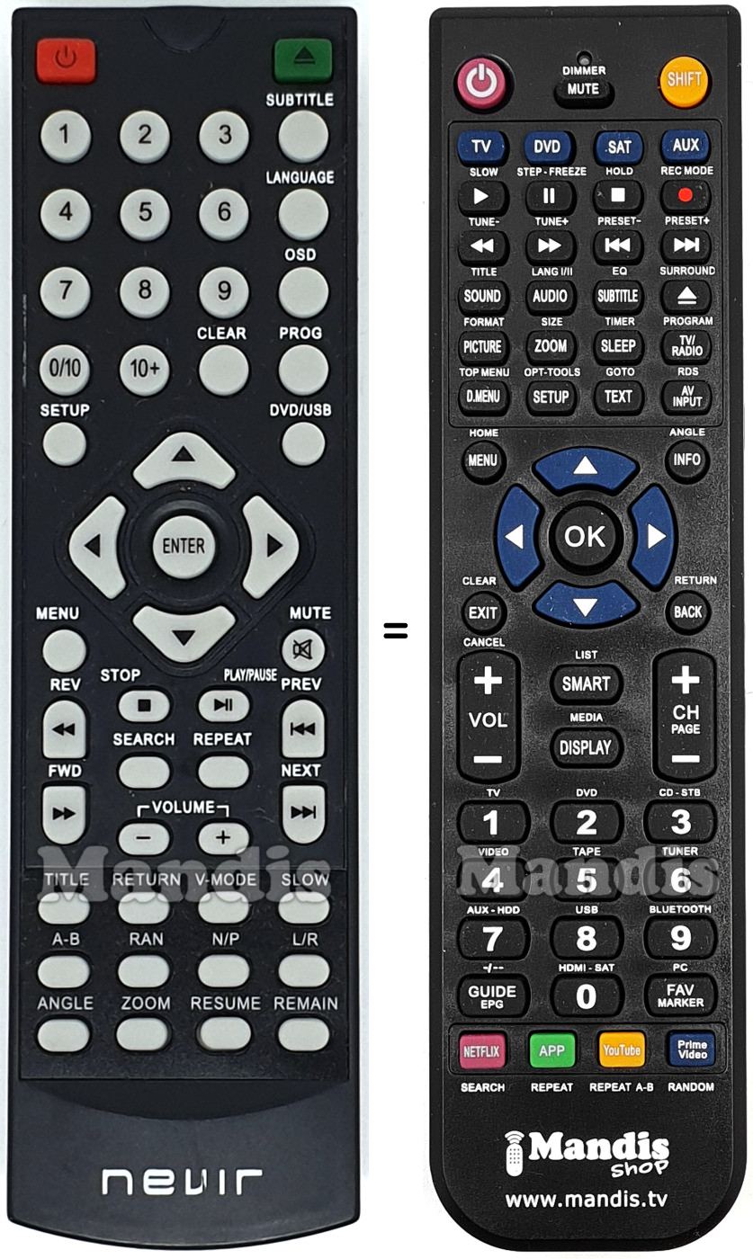 This remote control fully replaces your NEVIR022 and offers all the functions of the original.