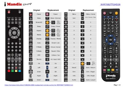 Below, we will show you the correspondence between each button on the original remote control and the button that performs the same function on the replacement remote control. In some cases, you may need to press the SHIFT key before pressing another button to perform certain actions. These additional functions are often not widely used and are included to facilitate understanding of the replacement remote control, or because the original remote control has more buttons than its equivalent.