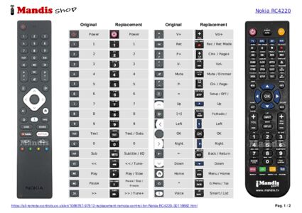 A document is included to help you use the new remote control easily, showing the button correspondence.
