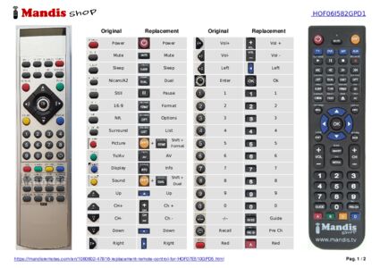Below, we will show you the correspondence between each button on the original remote control and the button that performs the same function on the replacement remote control. In some cases, you may need to press the SHIFT key before pressing another button to perform certain actions. These additional functions are often not widely used and are included to facilitate understanding of the replacement remote control, or because the original remote control has more buttons than its equivalent.