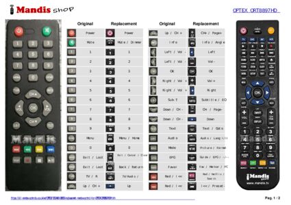This remote control fully replaces your ORT8897HD and offers all the functions of the original.