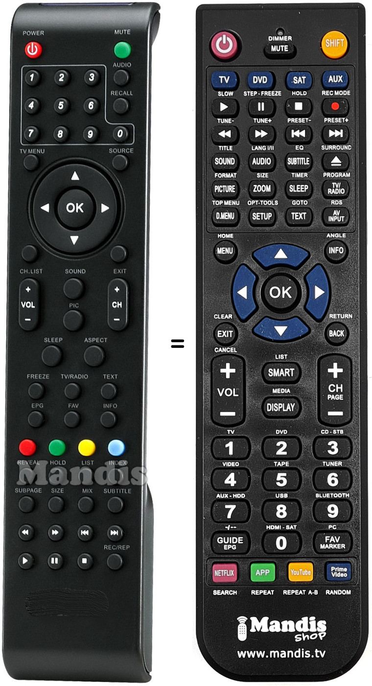 Remote control to replace the original and all its functions.
