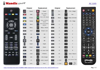 This remote control fully replaces your RC1205B and offers all the functions of the original.