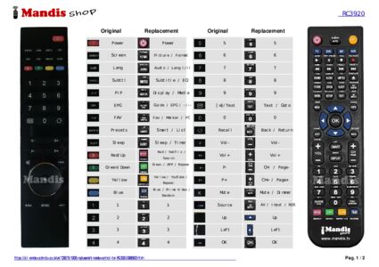 When we send the remote control, we also send a document with the correspondence of the keys between the replacement and the original remote controls which allows you to know how to perform the functions of the original remote. Sometimes it is available on the web so you can download it.