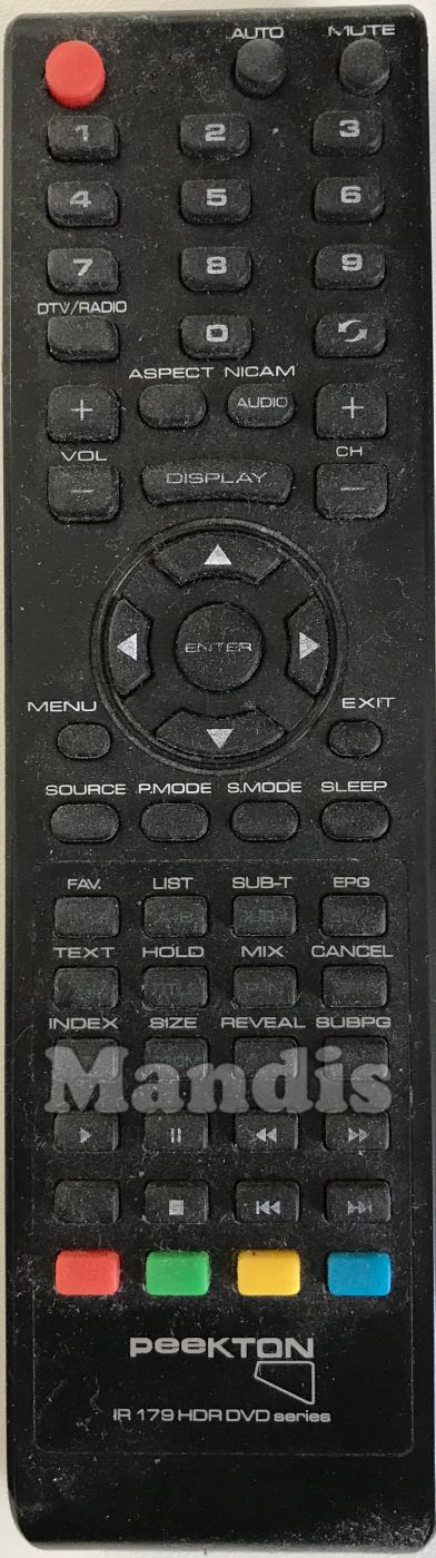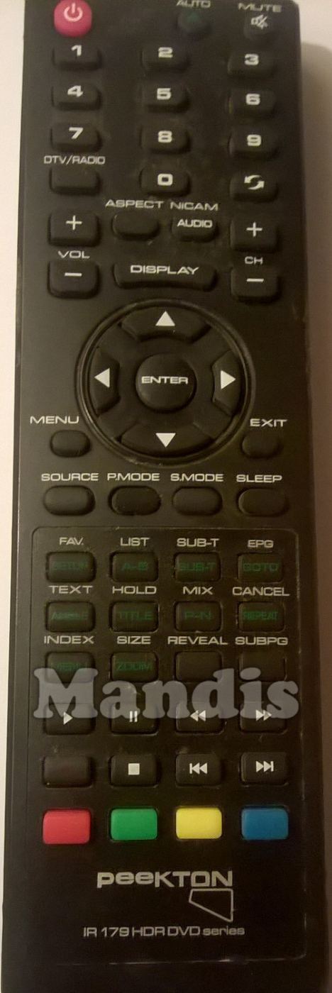 original remote control DVD series (IR 179HDR) used for televisions for the brand PEEKTON. This is an original remote control.