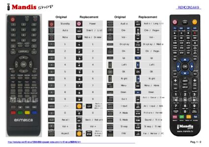 A document is included to help you use the new remote control easily, showing the button correspondence.