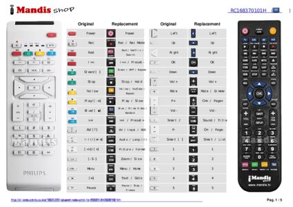 Below, we will show you the correspondence between each button on the original remote control and the button that performs the same function on the replacement remote control. In some cases, you may need to press the SHIFT key before pressing another button to perform certain actions. These additional functions are often not widely used and are included to facilitate understanding of the replacement remote control, or because the original remote control has more buttons than its equivalent.