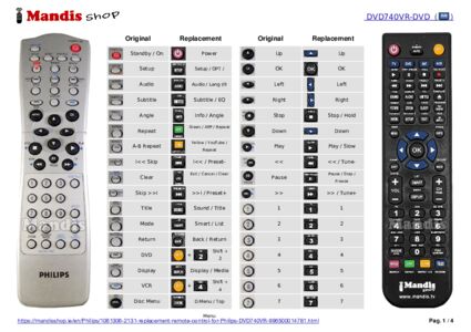 Below, we will show you the correspondence between each button on the original remote control and the button that performs the same function on the replacement remote control. In some cases, you may need to press the SHIFT key before pressing another button to perform certain actions. These additional functions are often not widely used and are included to facilitate understanding of the replacement remote control, or because the original remote control has more buttons than its equivalent.