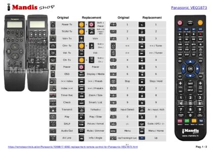 This remote control fully replaces your VEQ1873 and offers all the functions of the original.