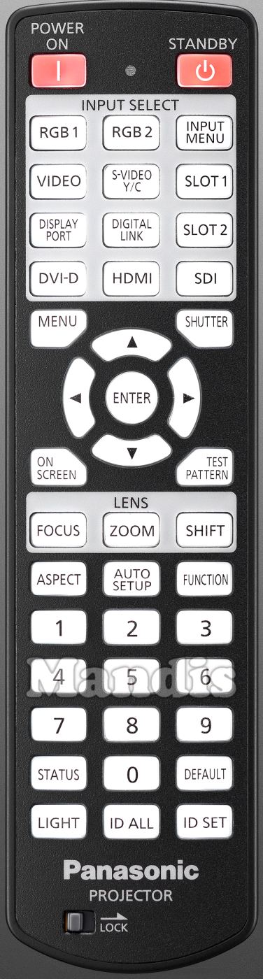 Original remote control N2QAYB001052 used for projectors for the brand Panasonic.