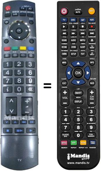 Remote control to replace the original N2QAYB000182 and all its functions.