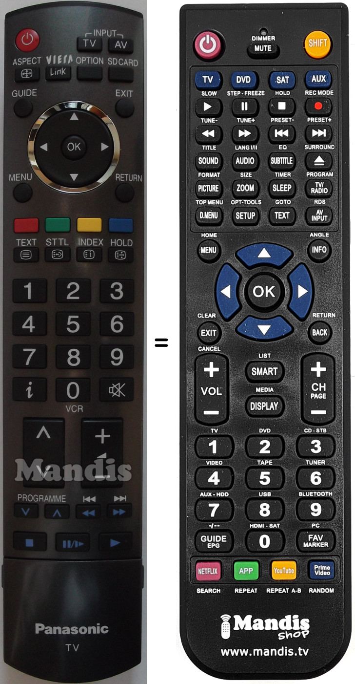Remote control to replace the original N2QAYB000114 and all its functions. It is not a universal remote but a substitute for the original. You will receive the remote ready to use: you only need to install the batteries. It is not necessary to program it. We offer you our full guarantee that the remote will fulfil all the functions of the original.