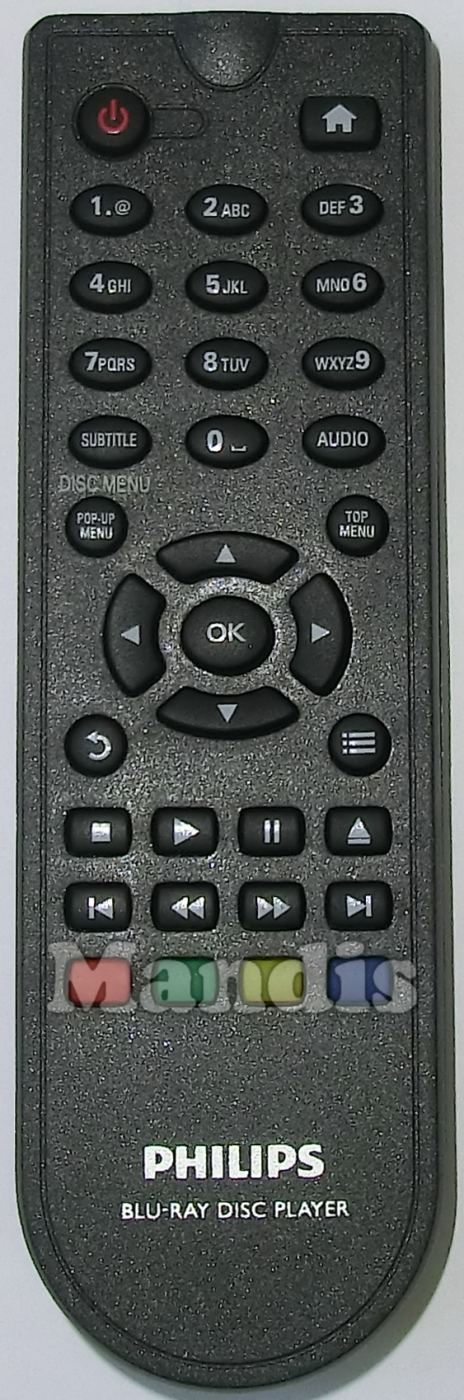 Power, Home, 1, 2, 3, 4, 5, 6, 7, 8, 9, 0, Subtitle, Audio, Pop-Up Menu / Disc Menu, Top Menu, Up, Left, OK, Right, Down, Back, List, Stop, Play, Pause, Open / Close, I<, <<, >>, >I, Red, Green, Yellow, Blue
