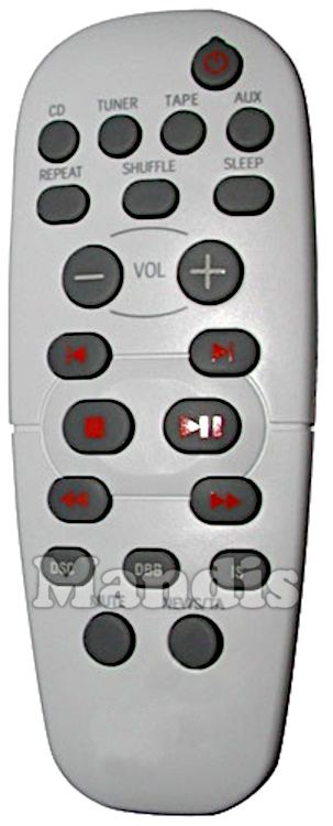 Power, CD, TUNER, TAPE, AUX, Repeat, Shuffle, Sleep, Vol-, Vol+, I<, >I, Stop, Play / Pause, <<, >>, DSC, DBB, IS, Mute, News / TA