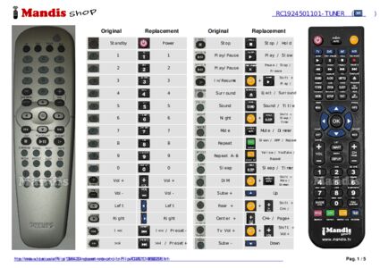 Below, we will show you the correspondence between each button on the original remote control and the button that performs the same function on the replacement remote control. In some cases, you may need to press the SHIFT key before pressing another button to perform certain actions. These additional functions are often not widely used and are included to facilitate understanding of the replacement remote control, or because the original remote control has more buttons than its equivalent.