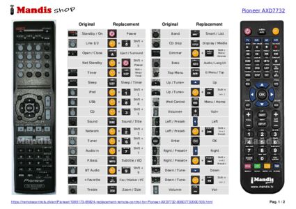 This remote control replaces most of the functions of your AXD7732 (8300773200010SRR). It is not a universal remote control, but a copy with most of the buttons and functions of your original.